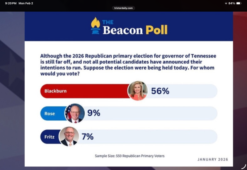 Blackburn’s Path to Governor Clears as Beacon Poll Shows Commanding Lead and Possible Trump Endorsement