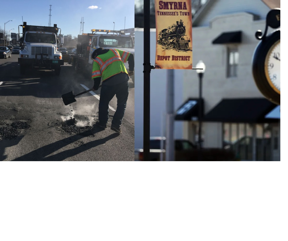 If you’d like to report a pothole in Smyrna, you can call the Town Hall by phone or text at (629) 295-TOWN (8696) or via email at mysmyrna@townofsmyrna.org. Regular business hours are Monday through Friday from 8 a.m. to 4:30 p.m.