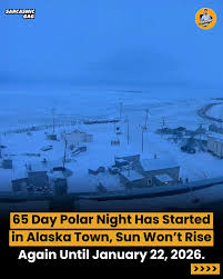 While Felicia and I are bundling up for a day or two of snow, the residents of Utqiaġvik saw their last sunrise on November 18, 2025, and won’t see the sun again until the other day of January 22, 2026—a staggering 65 consecutive days of darkness known as the “polar night.”
