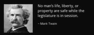 Lawmakers will reconvene for the second session of the 114th General Assembly on Jan. 13. Every time we return to Nashville, I’m reminded of the old warning often attributed to Mark Twain that no one’s life, liberty, or property is safe while the legislature is in session.