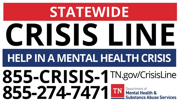 Mental Health Crisis Services are for those who may be experiencing a mental health emergency.The State of Tennessee provides various options (based on need) that are available statewide.Call the Tennessee Statewide Crisis Line 24/7
